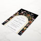 Invitación al Relieve metalizado de Invitación a la Boda de Arco Negro. Esta elegante y elegante invitación al Relieve metalizado boho arch boda cuenta con hermosas acuarelas pintadas a mano y flores silvestres dispuestas como un marco encantador. En la parte trasera hay un bonito ramo de coordinación con un monograma para la novia y el novio. Encontrar elementos coincidentes en la colección Boda Black Boho Wildflower.