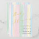 Moderna ducha de bebé neutra de género con suaves pinceladas color agua pastel en color púrpura, rosa, amarillo, verde y azul con una elegante fuente de caligrafía de Relieve metalizado real. Disponible en nuestra tienda para un niño o niña.