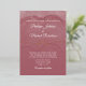 Esta elegante invitación a la boda presenta un suave color de agua rosa polvoriento con un sutil mármol, una romántica caligrafía blanca y un impresionante símbolo cardíaco de cuerda de Relieve metalizado dorado en todo el centro. Una hermosa mezcla de simplicidad y simbolismo, perfecta para parejas que buscan un diseño subestimado pero significativo. Ideal para bodas de primavera y otoño, sobre todo las románticas, de moda rústica o minimalistas. Personalizable completo con los detalles de su boda.