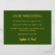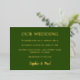 Invitación clásica de Relieve metalizado de Boda verde forestal, fácil de personalizar la parte delantera de la invitación con detalles del boda y los nombres de la pareja que se casa, utilizando la plantilla de personalización en línea antes de hacer el pedido. La parte delantera de la invitación incluye un hermoso texto de Relieve metalizado metálico real sobre un bonito fondo de color "verde bosque", mientras que la parte posterior de la tarjeta es de color claro "verde bosque".