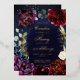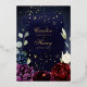 Invitación a una boda de la marina borgoña con una escena de watercoloreado pintado de peonías borgoñas y azul marino con acentos dorados brillantes contra un fondo de acuarela marina profundo. Esta versión está en RELIEVE METALIZADO DORADO así que todos los elementos dorados tienen oro de Relieve metalizado real.
