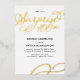 Esta moderna y elegante y sorprendente invitación a la fiesta de cumpleaños número 100 incluye las palabras "sorpresa 100" en letras de Relieve metalizado dorado con un diseño giratorio a juego en la esquina inferior derecha. Personalizar esta invitación de moda con el nombre y la información fiesta.