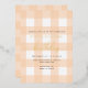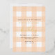 Esta invitación presenta un diseño de gingham clásico con detalles de Relieve metalizado de oro. El encabezado del guión es una imagen que no se puede editar. El resto del texto es totalmente editable. Para una personalización más avanzada de este diseño, simplemente seleccione el botón "Personalizar" de arriba.