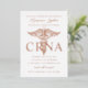 ¡Relieve metalizado de oro de verdad! Iniciales editables, CRNA y el símbolo médico caduceus sobre el fondo del color personalizado. Funciona como una invitación a una fiesta de graduación o como una invitación de graduación. La foto de atrás es opcional. Elige tu color de Relieve metalizado, oro, plata o oro rosa. Planes futuros o más fotos a la parte de atrás.