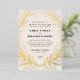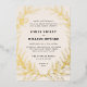 Una corona de flores dibujada a mano de ramas frondosas en marcos de Relieve metalizado elevados y un texto de invitación a la boda tipo elegante permite la máxima flexibilidad entre la redacción formal o informal en un fondo blanco cálido y clásico para siempre que se siente rico y eterno.