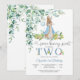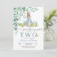 Celebra el día especial de tus pequeños con esta adorable invitación de cumpleaños de conejito con acuarela. Con un dulce conejito que sostiene un globo entre flores pastel y vegetación, este diseño caprichoso es perfecto para la fiesta de cumpleaños número dos de un niño. Los colores suaves y las fuentes juguetonas crean un aspecto encantador inspirado en la naturaleza que encantará a los invitados. Personaliza con los detalles de tu fiesta para hacerlo único y establece el tono para una celebración alegre.
