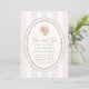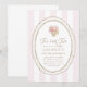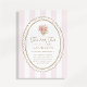 Encantadora invitación para un segundo cumpleaños que presenta un diseño de rayas suaves en rosa con una estética delicada de fiesta de té. La elegante disposición y los detalles dulces crean un aspecto refinado y juguetón, perfecto para una celebración de “Té para dos”.