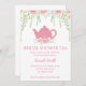 Esta invitación a una ducha de fiesta de té con flores rosa y verde está dando vibraciones a Bridgerton. Es perfecto para invitar a sus huéspedes a una ducha de fiesta de té de alta calidad. La invitación te da espacio para escribir para quién es la ducha, la fecha y hora, la ubicación y cómo se va a ver RSVP.
