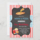 Invitación al tema de película de pizza de cuadros rojos y azules