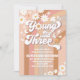 Celebra el día especial de tus pequeños con esta invitación de cumpleaños número 3 con flores retro. Con margaritas juguetonas, mariposas, signos de paz y tonos cálidos bohemios, este diseño alegre establece el ambiente perfecto para una fiesta divertida. Las fuentes negritas y caprichosas y el diseño colorido hacen que sea fácil compartir todos los detalles de la fiesta con estilo. Ideal para niños pequeños y niños que aman temas divertidos y retro, esta invitación seguramente impresionará a los invitados y creará recuerdos duraderos.