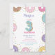 invitación al tercer cumpleaños, dulce invitación de donut, fiesta de tres años