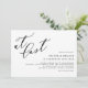 ¡Por fin! Invite a la familia y amigos a su boda con esta invitación a la boda de personalizable. Incluye la cita "Al fin" en caligrafía moderna y tipografía simple para otros detalles. Personalice esta invitación minimalista a la boda añadiendo sus propios detalles. Esta sencilla invitación a la boda es perfecta para cualquier temporada o tema de boda.
