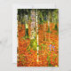 Tarjeta que incluye la pintura de Gustav Klimt Casa de campo con álamos (1903). Un paisaje otoñal de hojas naranjas en un bosque de abedules con hermosas flores azules. Un regalo maravilloso para los fanáticos del Art Nouveau y el arte austriaco.