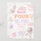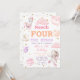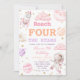 Alcanzar el espacio Chica de las Cuatro Estrellas Invitación de Cumpleaños 4º. Invitación Dulce en el espacio exterior o Alcance de las Cuatro Estrellas 4ª invitación a una niña bebé con un pequeño sol, planeta, estrellas, nave espacial y un hombre espacial. Este Chica Reach Four The Stars es ideal para un fiesta de 4 años con temática espacial.