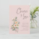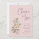 Celebra la futura novia con esta elegante y elegante invitación a la ducha de novias con letras a mano "Cheers to Love" en color café-pot, nombre personalizado y detalles de ducha de novia en color café-pot, acuarela floral en colores pastel y un polvoriento fondo de rosa. Esta invitación es perfecta para una ducha de novia moderna, romántica y sofisticada. También es perfecto para una ducha de novias en primavera o verano, ya que los elementos florales y el color polvoriento de los rosas evocan la belleza de la temporada.