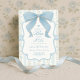 Celebre con estilo con esta vintage invitación a la ducha de novia con arco azul, perfecta para una reunión atemporal y femenina. Diseñada con un gran arco azul pintado a mano, delicadas rayas de papel pintado de rosa escalador y sutiles acentos de encaje, esta invitación exubera un romántico encanto de cabaña con una moderna estética de coqueta.