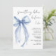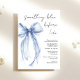 Moda invitación a la ducha de novia con una delicada acuarela de color azul claro, "algo negro antes que yo" en un guión moderno de caligrafía, y el nombre de la novia y los detalles de la ducha con letras simples.