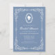 Para la futura novia que está planeando una ducha de novia. Este guion caligráfico azul y blanco elegante, la invitación a la ducha de novia tiene un estilo vintage y antiguo. Esta ducha de novia es elegante y elegante y se puede utilizar en cualquier época del año. Esta invitación a la ducha de novia se personaliza fácilmente con la inclusión de los detalles de tu ducha de novia. Para cualquier solicitud de personalización o a medida, póngase en contacto con nosotros a través de Zazzle.