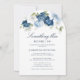 Floral Dusty Blue Watercolour Flowers Bridal Shower Invitation. Puede personalizar esta invitación a la ducha de novia haciendo clic en el botón "Personalizar" de arriba. La tarjeta cuenta con un moderno y elegante entorno natural de eucalipto, polvorientas flores azules y blancas, con escritura y diseño moderno. CONSEJO: Ideal para fiestas sorpresa, duchas para bebés, recepción de bodas y fiestas jubilados.
