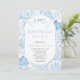 Celebra la futura novia con una invitación a la ducha con flores de color azul acuático que combina elegancia y encanto. El diseño crea un ambiente dulce para el evento, para un día lleno de amor, alegría y momentos apreciados. Utilice las herramientas de diseño para personalizar del texto, las fuentes y los colores. También disponible como descarga.