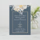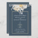 Algo azul! La tradicional invitación a una boda floral floral presenta un elegante diseño floral azul y blanco sobre un fondo mudo con guarnecido dorado