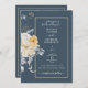 Algo azul! La tradicional invitación a una boda floral floral presenta un elegante diseño floral azul y blanco sobre un fondo mudo con guarnecido dorado