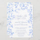 Invitación Algo Azul QR Código Floral Script Ducha de novia