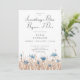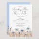 Flores de maíz azules suaves floreciendo en un suave campo marrón color marrón hacen que esta simple ducha de novia "algo azul antes que yo" sea una invitación única. Casi se puede sentir la suave brisa moviendo las hierbas. Sencillo pero elegante, los tonos tierra y el azul suave son la combinación perfecta. La parte trasera de la tarjeta transporta el tema del campo a un cielo azul claro. Creado por Simply Farmhouse Press.