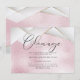 Facetas geométricas enmarcadas en oro blanco perlado - en una textura de vidrio esmerilado opalescente de un bonito color rosa sherbet es ultra moderno y chic. "Cambio" en elegante caligrafía - Si has enviado las invitaciones y has tenido que pausar inesperadamente la fecha de tu gran evento, envía estas a tus invitados. Diseño original de ©WhimsicalArtwork™tric