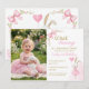 Celebra el primer cumpleaños de tu bebé con esta invitación de foto personalizada "Some Bunny Is Turning One". Con un conejo de acuarela con un vestido rosa suave, acentos florales suaves, un lazo delicado y espacio para tu foto favorita, este dulce diseño es perfecto para una fiesta de cumpleaños temática de conejo encantadora y elegante.