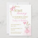 Celebra el primer cumpleaños de tu bebé con esta invitación personalizada "Some Bunny Is Turning One". Con un conejo de acuarela con vestido rosa y sosteniendo un globo, suaves acentos florales y un delicado lazo, este dulce diseño es perfecto para una fiesta de cumpleaños encantadora y elegante con tema de conejito.