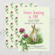 Algún conejo es UNO, Invitación de cumpleaños número uno con un pequeño conejo y tréboles. Un feliz collage de pinturas acuarelas para la pequeña que celebra su primer cumpleaños.