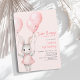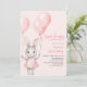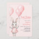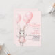 Celebra el primer cumpleaños de tu hijo con nuestra linda invitación al conejito rosa. El diseño está decorado con un bonito conejo acuático y globos rosados de colores vivos, lo que lo convierte en un lugar elegante y encantador. Utilice las herramientas de diseño para personalizar del texto. También disponible como descarga digital.