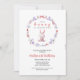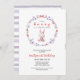 ¡Celebra un amamantador primer cumpleaños! ¡Haga inolvidable su primer cumpleaños con nuestra invitación de primer cumpleaños del conejo de primavera! Esta invitación, adornada con un caprichoso conejito rodeado de una bella corona floral en tonos violeta, blanco y rojo, captura perfectamente la magia de la primavera. Perfecto para celebrar este hito con amigos y familia, esta invitación marca el tono para una hermosa celebración de primavera. ¡Pida ahora y prepárate para una fiesta de primer cumpleaños memorable!
