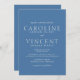 Eleva tu papelería boda con la invitación formal Alice French Blue Wedding, donde la elegancia atemporal se une a la simplicidad moderna. Este refinado diseño presenta un rico fondo azul francés bellamente contrastado por una tipografía serif de marfil crujiente. Su diseño limpio y sus letras espaciosas crean un ambiente sofisticado, perfecto para las parejas que planean una celebración clásica de gama alta.