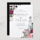 Invite a sus invitados a su cita con nuestra hermosa invitación de boda con temática de Alicia en el País de las Maravillas. Perfecto para un boda con temática Alicia en el País de las Maravillas. El diseño presenta una mezcla de nuestros propios florales originales dibujados a mano y obras de arte. Hemos restaurado meticulosamente los ilustraciones vintage de la icónica Alicia en el País de las Maravillas dibujándolos a mano y llevándolos a la vida con hermosos tonos de acuarela. El diseño presenta un patrón de tablero de ajedrez en blanco y negro de moda con nuestra llave original de color vintage y flores de acuarela de aceite incorporadas. Los elegantes y vintage emparejamientos de estilo de texto realzan esta mágica, caprichosa e icónica temática de Alicia vintage en el país de las maravillas. Diseñado por Moodthology Papery