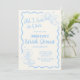 On the front, you'll find space for all the essential details: the bride's name, the location, as well as the date and place of the shower. The charming handwritten font and beachy icons create a fun and relaxed vibe, inviting guests to join in the festivities. The soft sky blue and off white color scheme evokes the serene beauty of the coast, while the playful design elements ensure that your invitation stands out.