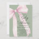 Invitación All in One Blush Pink Bow Sage Green Baby Shower
