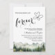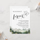 An elegant Wedding Invitation with watercolor mountains and pine trees that you can customize with your details.