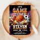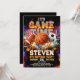 Get ready for an epic, high-energy celebration with this All-Sports "Game Time" birthday invitation! This action-packed design features a dynamic explosion of fire and water, showcasing a basketball, football, and soccer ball at the center. The "Game Time" headline is rendered in a bold, metallic 3D font set against a dramatic dark background filled with sparks and energy.