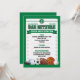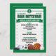 Esta carta deportiva de estrella Bar Mitzvah es perfecta para los adolescentes en todos los deportes posibles. El diseño se parece a una tarjeta de intercambio con acentos verdes y la palabra "Bar Mitzvah" se representa para que parezca letras de deportes cosidos (esta palabra no es editable). Las "estadísticas" del jugador dan la información sobre la ceremonia junto con su "entrenador" a donde se llevará a cabo la celebración del equipo. Disponible con elementos coincidentes.