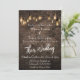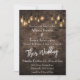 Invitación a la boda personalizada, Ladrillos industriales (más ligeros) con luz Edison, texto blanco.