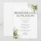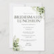 Esta elegante invitación de almuerzo de damas de honor con tipografía botánica verde se puede personalizar con su información en tipografía chic con sus iniciales de monograma en el reverso. Diseñado por Thisisnotme©