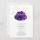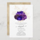 Invitación de almuerzo de damas de honor con flores en azul real, violeta y púrpura con acentos de dorado de lámina falsa personalizable a los detalles de su evento.