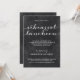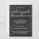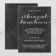 Esta elegante invitación de almuerzo de ensayo al estilo pizarra presenta una fuente de caligrafía manuscrita de estilo vintage caprichosa y un fondo de pizarra. Los detalles del evento se pueden personalizar para su fiesta.
