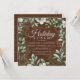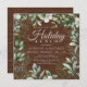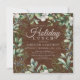 Este diseño de vacaciones de moda incluye un marco floral de invierno que rodea la invitación de su personalizado de vacaciones, información sobre un fondo rústico de madera marrón. Dentro del marco cuadrado, agregue su información personalizada para las invitaciones de grupo de Navidades. Simplemente edite el texto en los cuadros de texto proporcionados. #navidades #feriados #estacional #festial #invierno #acuarela #moderna #moda #invitaciones #almuerzo #holidaylunch #elegante #christmaslunch #christmasparty #vacdayparty #fiesta #floral botánica #madera #madera #rústico