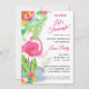 Esta colorida invitación a la fiesta "Aloha Let's Flamingle" cuenta con flores de hibisco tropical brillantes, flamencos divertidos y está personalizada con tu información. Perfecto para cumpleaños, graduación, boda y más! Suministros y accesorios de fiesta a juego disponibles. Diseño ©Rosalind Moore, Diseños de las Lanes de cerezo.
