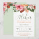 Este luau de moda tropical ofrece una elegante decoración floral con flores de color rosa, blanco y coral y un fondo de vieiras blancas. Las letras verdes de salvia y corales añaden a este diseño tropical de gama alta, perfecto para cualquier celebración. Fácil de personalizar con la información del evento. El fondo de la invitación presenta acentos de ramo tropical con un fondo de color de sabio claro.