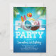 Invitación de cumpleaños del Fiesta de la piscina de Aloha. Invitar a la familia y amigos con esta divertida y festiva invitación de cumpleaños fiesta. Esta invitación tropical para el cumpleaños incluye ilustraciones acuáticos, flores tropicales, piña y flamingo. Perfecto para eventos de verano, tropicales y de estilo hawaiano. Personalice fácilmente el diseño con su propia redacción. Hay más diseños y suministros de fiesta disponibles en mi tienda NiceStudioCreative.