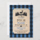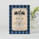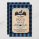 Invitación de Lumberjack, CUALQUIER fiesta de cumpleaños. Invitación azul gingham con escenario de ciervos y bosques nevados. Se incluye la impresión posterior.